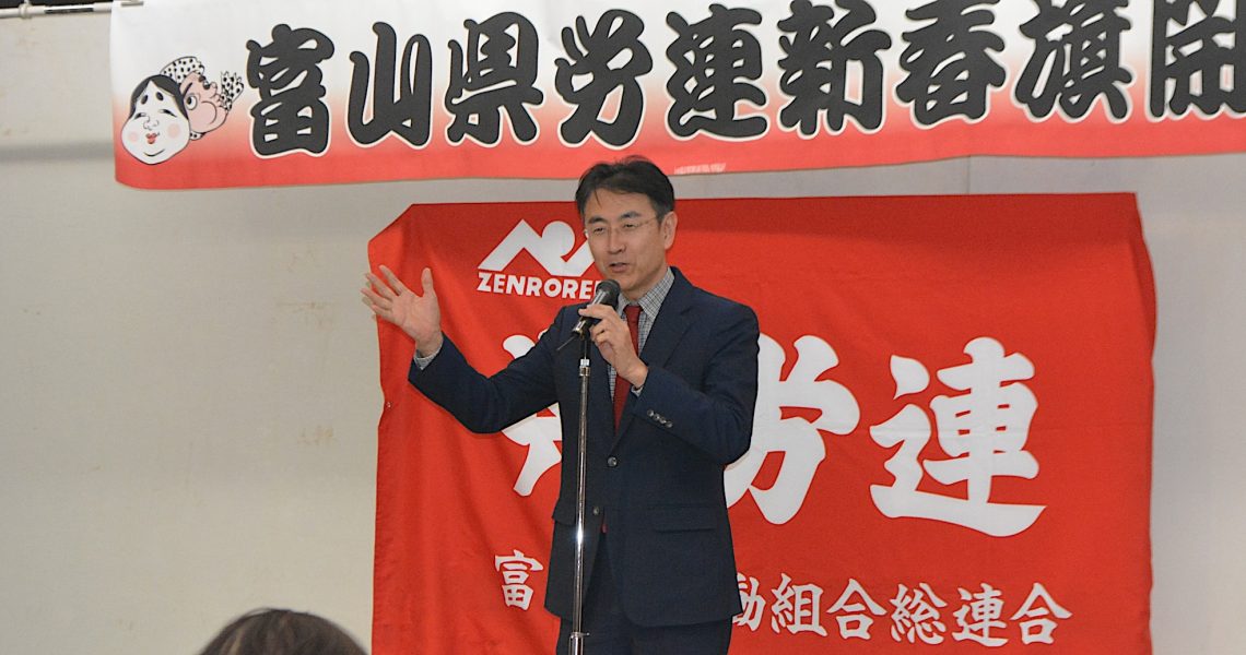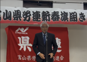 10日、富山県労連新春旗開きが行われ、来賓として参加しました。賃上げ、労働時間短縮など労働条件改善、国民生活擁護、軍拡阻止・平和な日本を大きな柱の労働運動の方針をもつ富山県労連のみなさんと共に力を合わせてきた、日本共産党富山県委員会として、上田俊彦県委員長や火爪弘子県議が挨拶。私も一言挨拶しました。